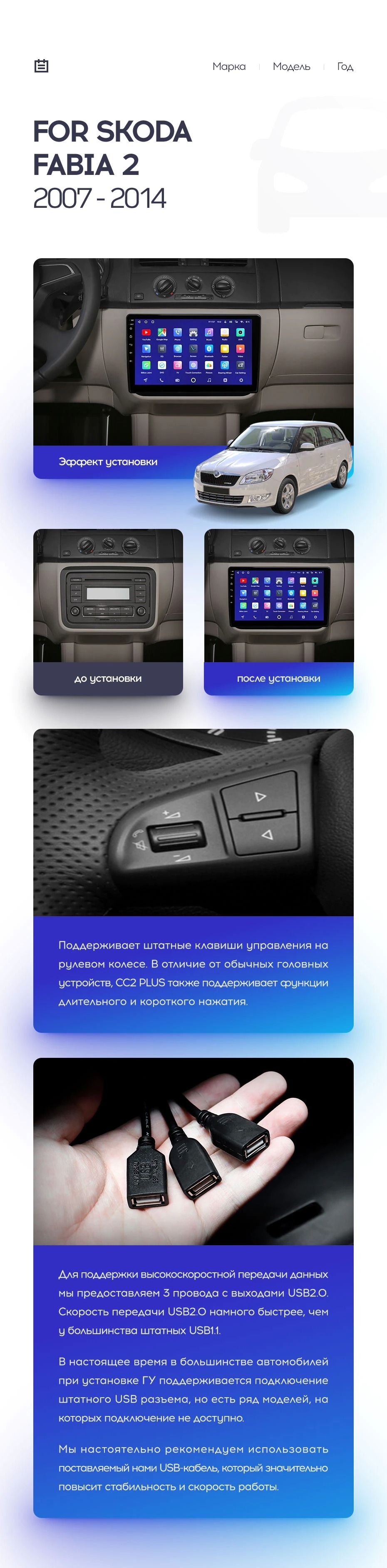 Модель Teyes CC2 Plus - это именно та штатная магнитола, которая полноценно заменит в вашем автомобиле все мультимедийные устройства. Большой и красочный дисплей, управление голосом, интернет и навигация, безупречная акустика и всё то, что так любят автомобилисты - комфорт и мощность во время езды.