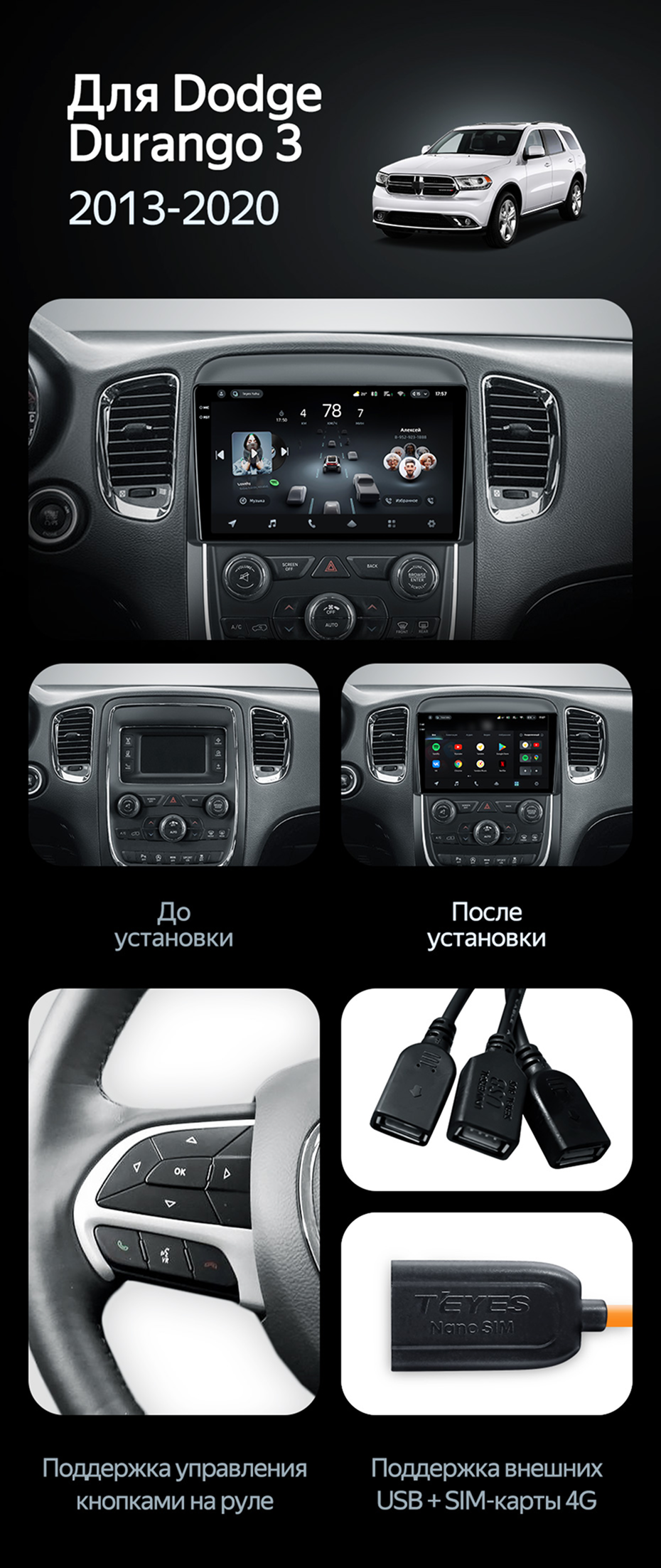 Переходная рамка Dodge Durango 3 (2013-2020) (9") - купить всего за 7 200 руб. в интернет-магазине в Тамбове Teyes.com.ru. ✓ Самый лучший выбор мультимедиа ✓ Лучшая замена штатному ГУ ✓ Тел. +7 (800) 775-31-74