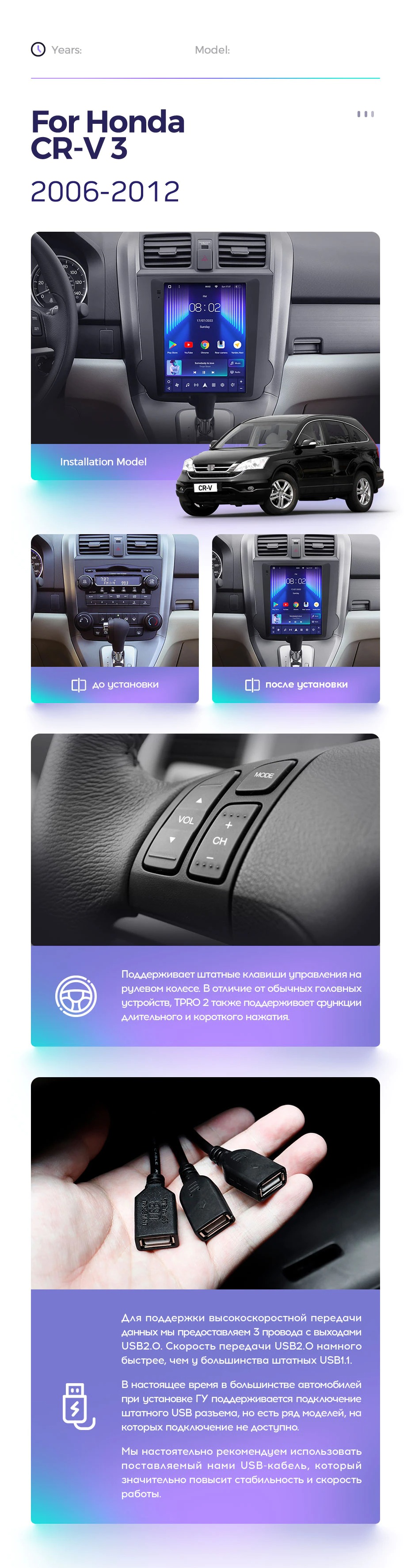 Штатная магнитола Tesla style Teyes TPRO 2 3/32 Honda CR-V 3 RE (2006-2012) Тип-A - купить всего за 39 200 руб. в интернет-магазине в Тамбове Teyes.com.ru. ✓ Самый лучший выбор мультимедиа ✓ Лучшая замена штатному ГУ ✓ Тел. +7 (800) 775-31-74