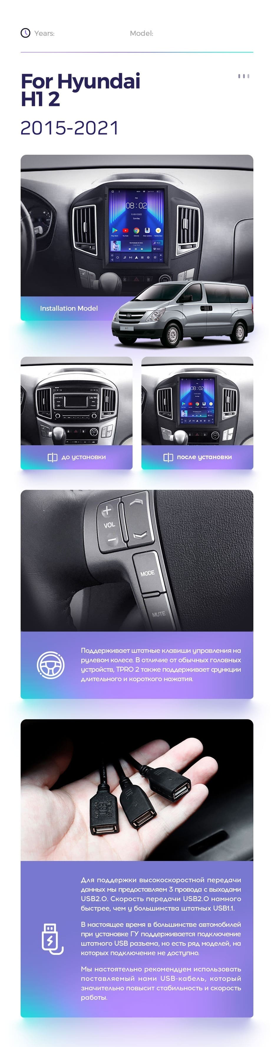 Штатная магнитола Tesla style Teyes TPRO 2 4/64 Hyundai H1 TQ (2015-2021) - купить всего за 39 000 руб. в интернет-магазине в Тамбове Teyes.com.ru. ✓ Самый лучший выбор мультимедиа ✓ Лучшая замена штатному ГУ ✓ Тел. +7 (800) 775-31-74