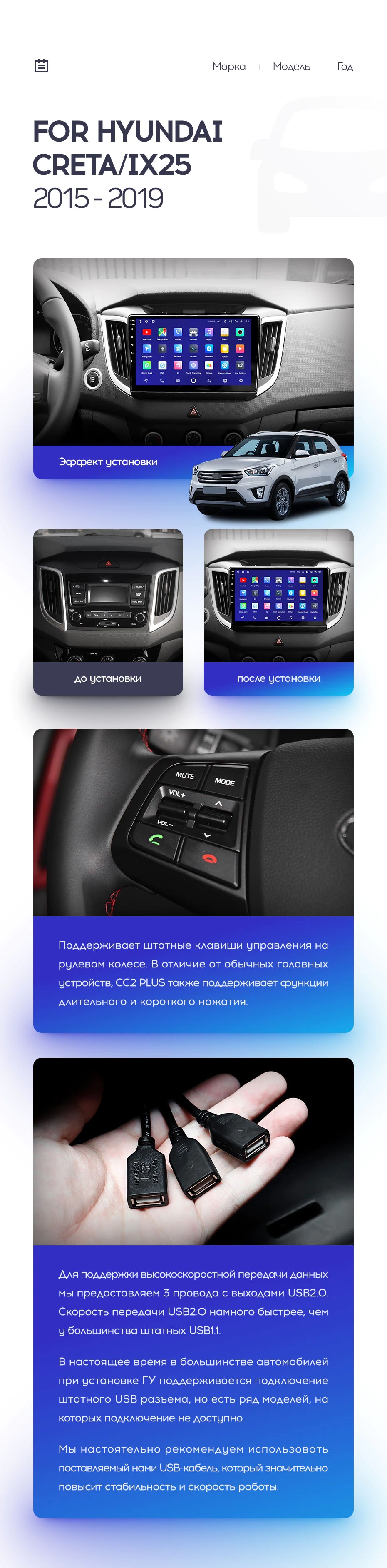 Штатная магнитола Teyes CC2L Plus 1/16 Hyundai Creta (2015-2020) - купить всего за 15 500 руб. в интернет-магазине в Тамбове Teyes.com.ru. ✓ Самый лучший выбор мультимедиа ✓ Лучшая замена штатному ГУ ✓ Тел. +7 (800) 775-31-74