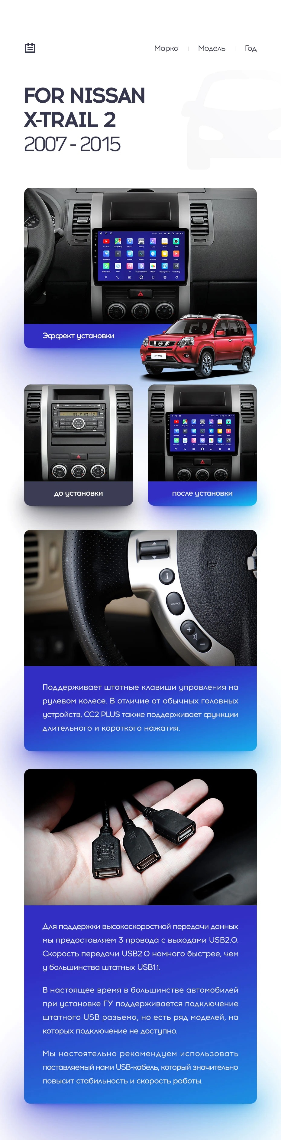 Штатная магнитола Teyes CC2L Plus 2/32 Nissan X-Trail T31 (2007-2015) - купить всего за 18 000 руб. в интернет-магазине в Тамбове Teyes.com.ru. ✓ Самый лучший выбор мультимедиа ✓ Лучшая замена штатному ГУ ✓ Тел. +7 (800) 775-31-74