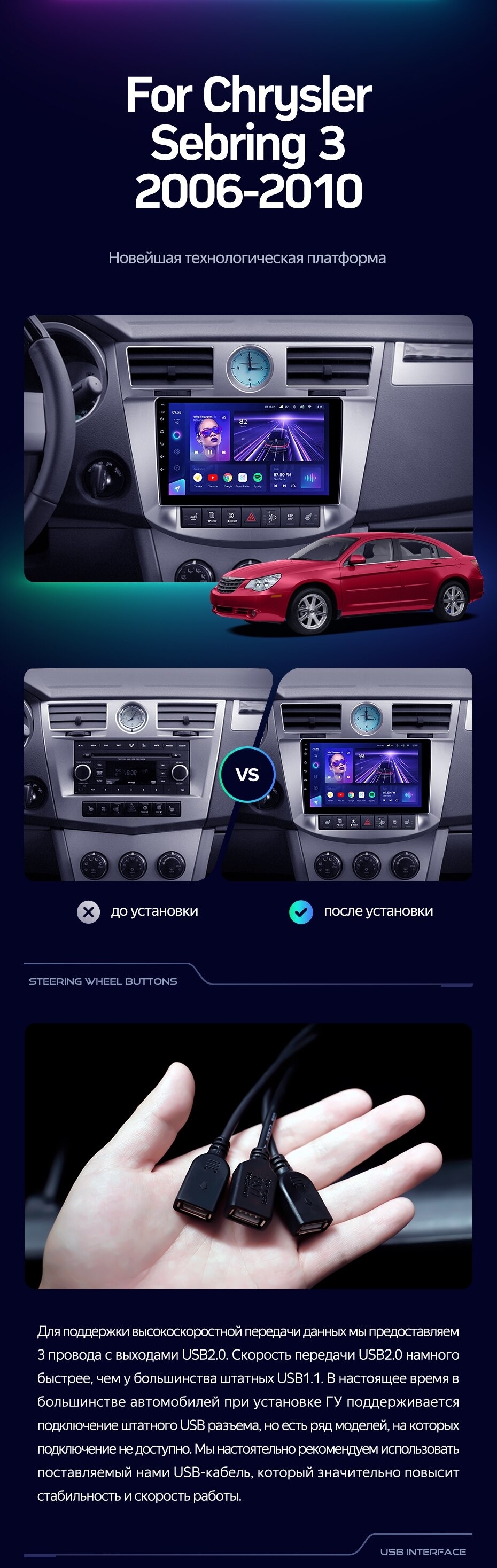 Штатная магнитола Teyes CC3 2K 360 6/128 Chrysler Sebring 3 JS (2006-2010) - купить всего за 57 800 руб. в интернет-магазине в Тамбове Teyes.com.ru. ✓ Самый лучший выбор мультимедиа ✓ Лучшая замена штатному ГУ ✓ Тел. +7 (800) 775-31-74