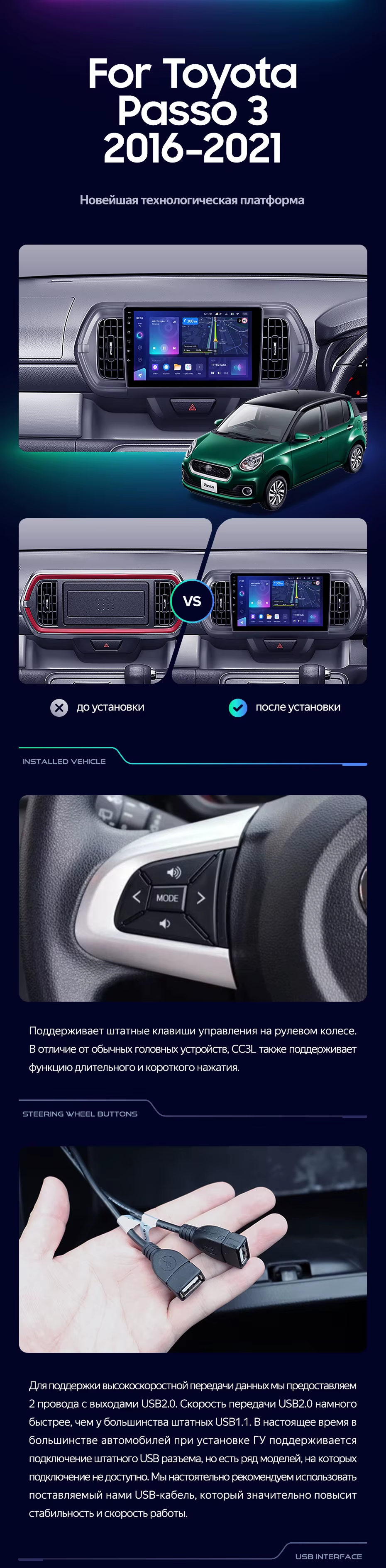 Штатная магнитола Teyes CC3 2K 360 6/128 Toyota Passo 3 (2016-2021) Правый руль - купить всего за 54 400 руб. в интернет-магазине в Тамбове Teyes.com.ru. ✓ Самый лучший выбор мультимедиа ✓ Лучшая замена штатному ГУ ✓ Тел. +7 (800) 775-31-74