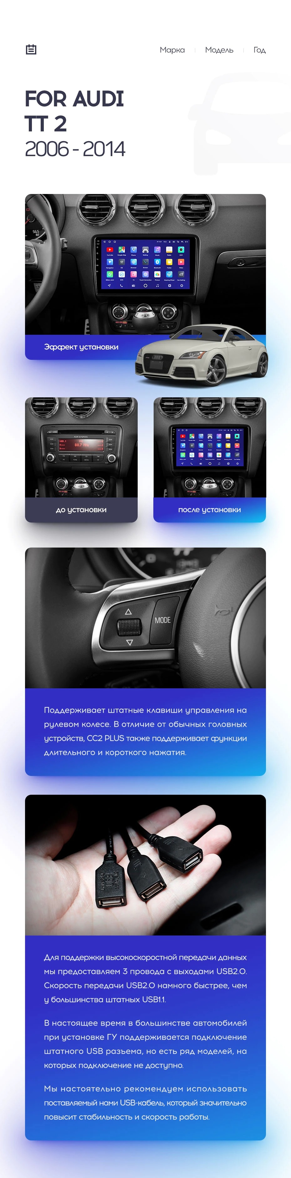 Штатная магнитола Teyes CC3 2K 4/32 Audi TT 2 (2006-2014) (13") - купить всего за 42 500 руб. в интернет-магазине в Тамбове Teyes.com.ru. ✓ Самый лучший выбор мультимедиа ✓ Лучшая замена штатному ГУ ✓ Тел. +7 (800) 775-31-74