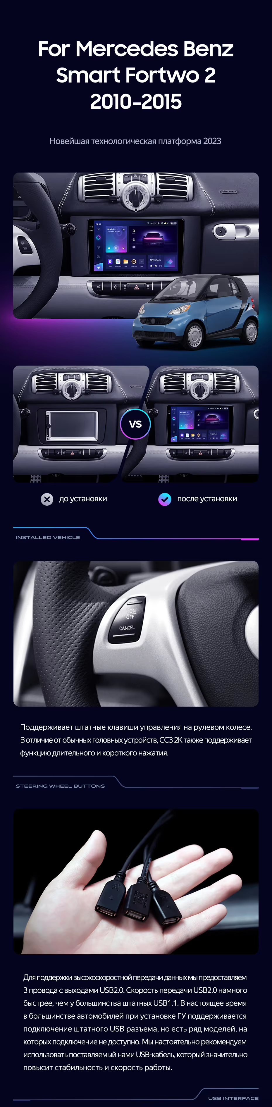 Штатная магнитола Teyes CC3 2K 4/32 Mercedes-Benz Smart Fortwo 2 (2010-2015) F1 - купить всего за 39 200 руб. в интернет-магазине в Тамбове Teyes.com.ru. ✓ Самый лучший выбор мультимедиа ✓ Лучшая замена штатному ГУ ✓ Тел. +7 (800) 775-31-74