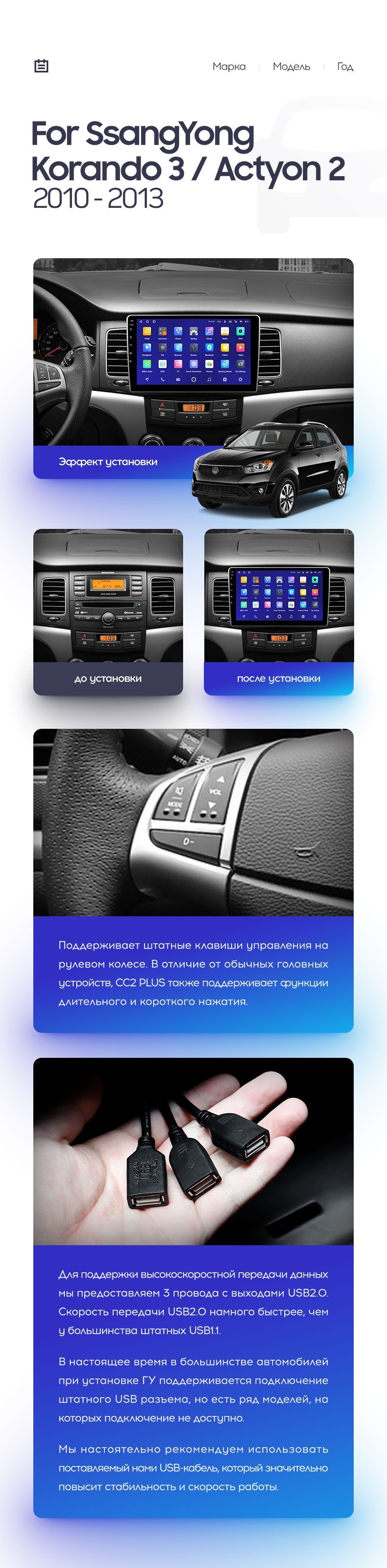 Штатная магнитола Teyes CC3 2K 4/32 SsangYong Korando 3 Actyon 2 (2010-2013) (13") - купить всего за 41 000 руб. в интернет-магазине в Тамбове Teyes.com.ru. ✓ Самый лучший выбор мультимедиа ✓ Лучшая замена штатному ГУ ✓ Тел. +7 (800) 775-31-74