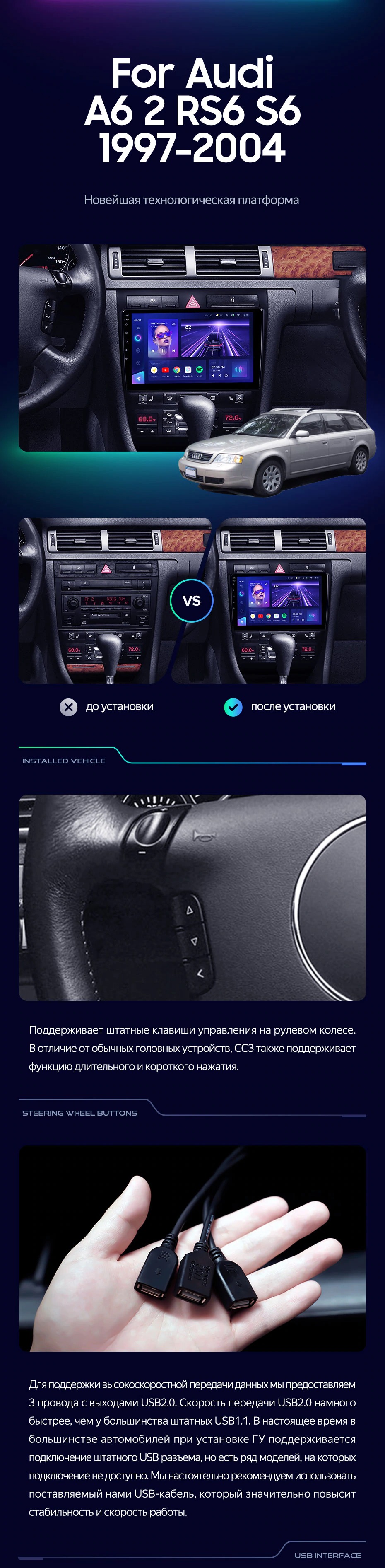 Штатная магнитола Teyes CC3 2K 4/64 Audi A6 2 (1997-2004) (13") - купить всего за 44 800 руб. в интернет-магазине в Тамбове Teyes.com.ru. ✓ Самый лучший выбор мультимедиа ✓ Лучшая замена штатному ГУ ✓ Тел. +7 (800) 775-31-74
