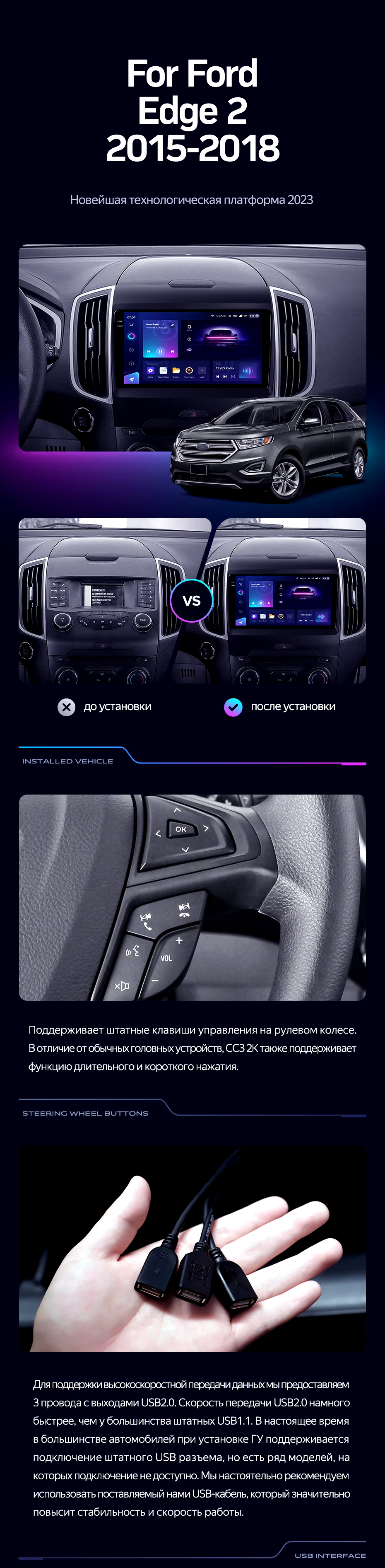 Штатная магнитола Teyes CC3 2K 4/64 Ford Edge 2 (2015-2018) F1 - купить всего за 48 000 руб. в интернет-магазине в Тамбове Teyes.com.ru. ✓ Самый лучший выбор мультимедиа ✓ Лучшая замена штатному ГУ ✓ Тел. +7 (800) 775-31-74