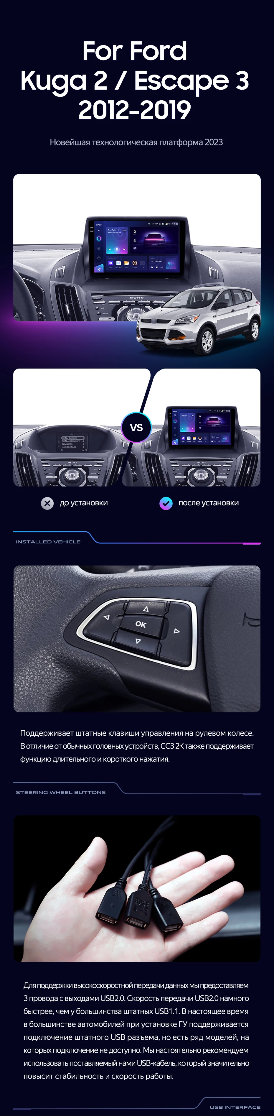 Штатная магнитола Teyes CC3 2K 4/64 Ford Escape 3 (2012-2019) Тип-A - купить всего за 48 570 руб. в интернет-магазине в Тамбове Teyes.com.ru. ✓ Самый лучший выбор мультимедиа ✓ Лучшая замена штатному ГУ ✓ Тел. +7 (800) 775-31-74