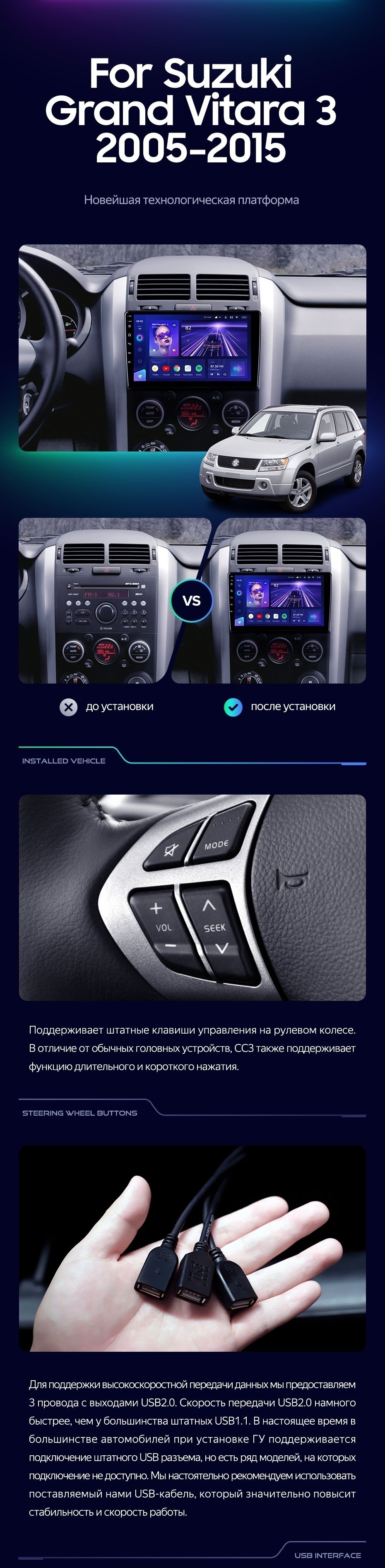 Штатная магнитола Teyes CC3 2K 4/64 Suzuki Grand Vitara 3 (2005-2015) - купить всего за 47 130 руб. в интернет-магазине в Тамбове Teyes.com.ru. ✓ Самый лучший выбор мультимедиа ✓ Лучшая замена штатному ГУ ✓ Тел. +7 (800) 775-31-74