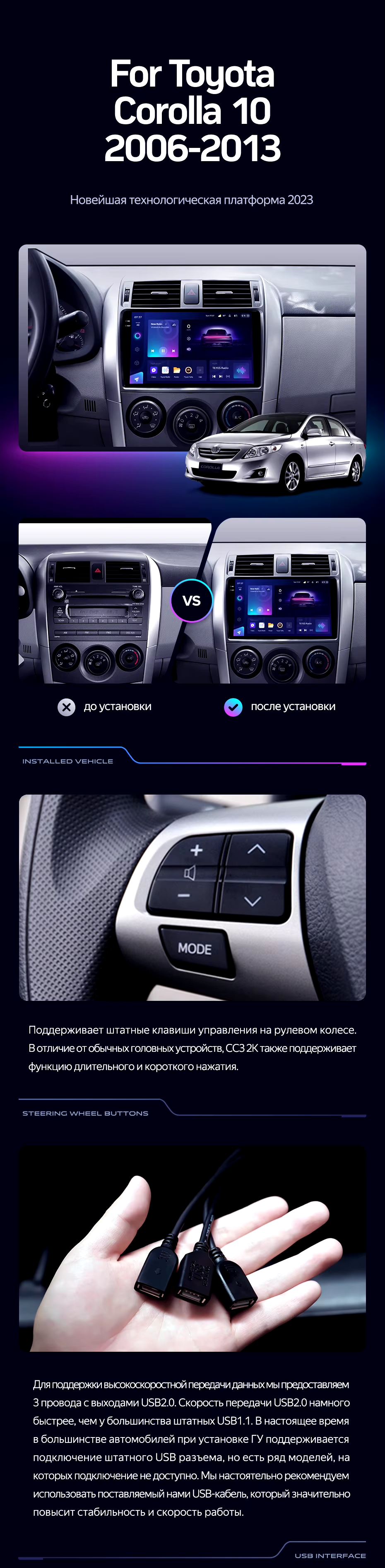 Штатная магнитола Teyes CC3 2K 4/64 Toyota Corolla 10 E140 E150 (2006-2013) Тип-B - купить всего за 47 000 руб. в интернет-магазине в Тамбове Teyes.com.ru. ✓ Самый лучший выбор мультимедиа ✓ Лучшая замена штатному ГУ ✓ Тел. +7 (800) 775-31-74