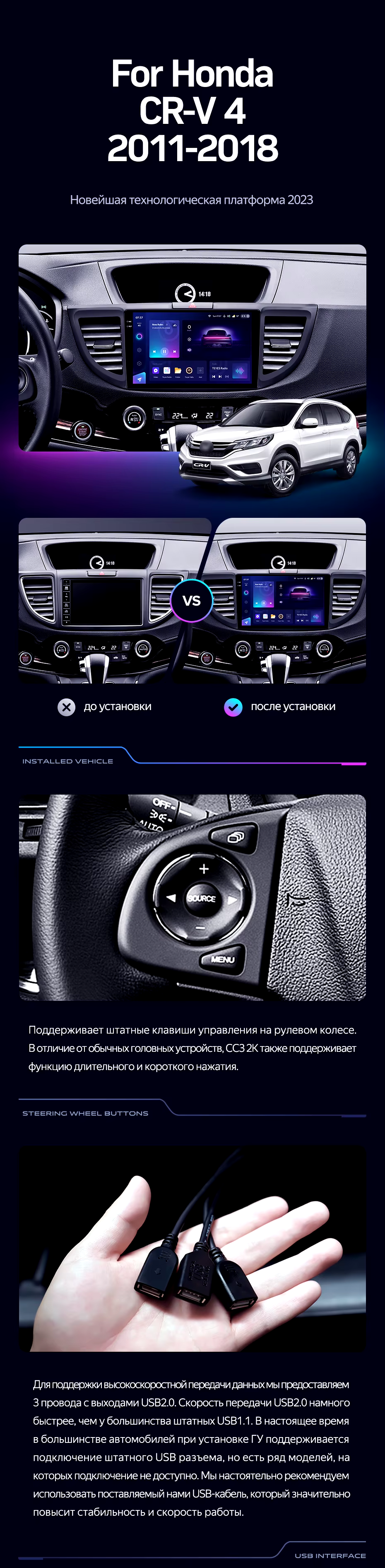 Штатная магнитола Teyes CC3 2K 6/128 Honda CR-V 4 RM RE (2011-2018) Тип-C (13") 9 inch - купить всего за 47 460 руб. в интернет-магазине в Тамбове Teyes.com.ru. ✓ Самый лучший выбор мультимедиа ✓ Лучшая замена штатному ГУ ✓ Тел. +7 (800) 775-31-74