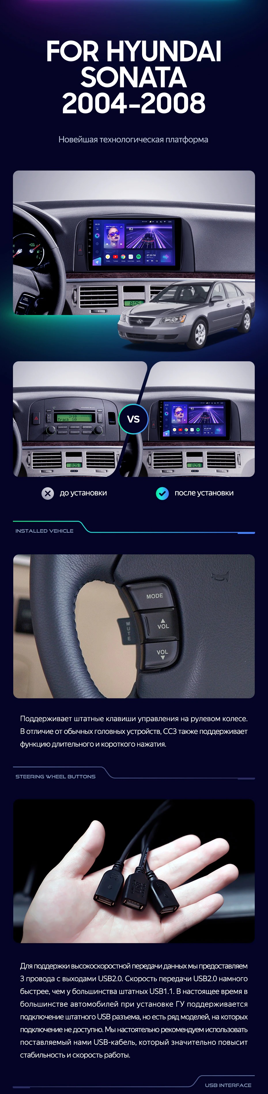 Штатная магнитола Teyes CC3 2K 6/128 Hyundai Sonata NF (2004-2008) - купить всего за 45 700 руб. в интернет-магазине в Тамбове Teyes.com.ru. ✓ Самый лучший выбор мультимедиа ✓ Лучшая замена штатному ГУ ✓ Тел. +7 (800) 775-31-74