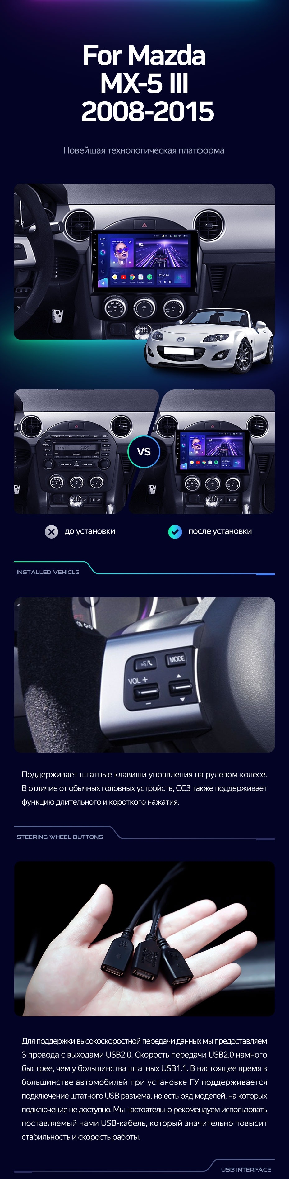 Штатная магнитола Teyes CC3 2K 6/128 Mazda MX-5 (2008-2015) - купить всего за 54 600 руб. в интернет-магазине в Тамбове Teyes.com.ru. ✓ Самый лучший выбор мультимедиа ✓ Лучшая замена штатному ГУ ✓ Тел. +7 (800) 775-31-74