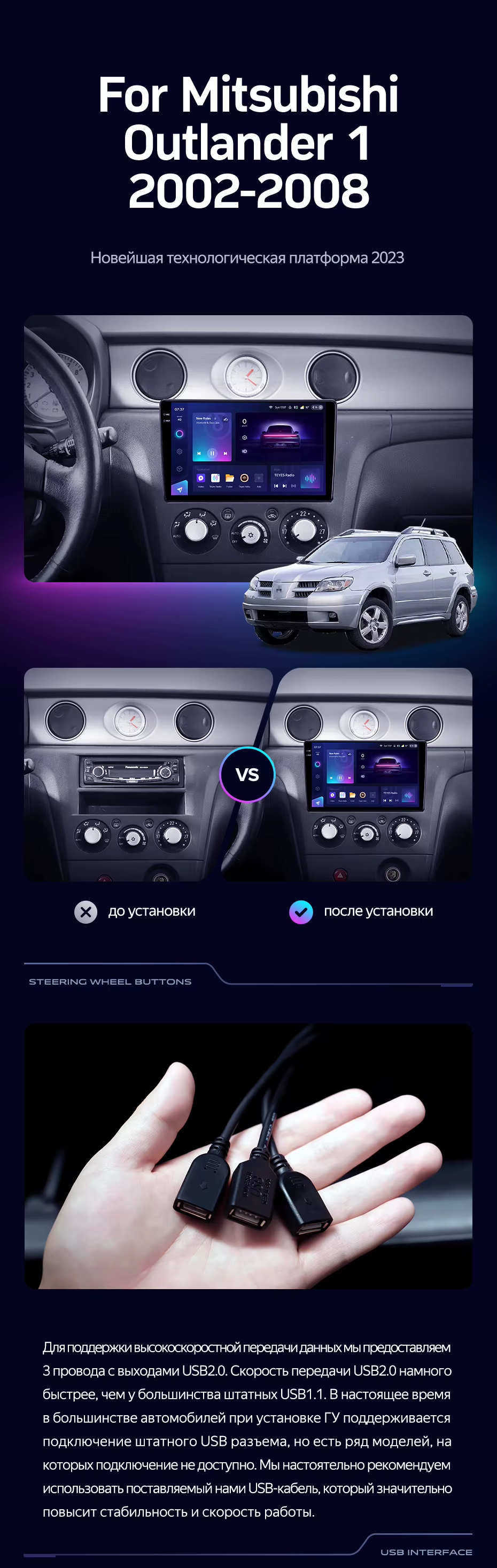 Штатная магнитола Teyes CC3 2K 6/128 Mitsubishi Outlander 1 (2002-2008) F2 - купить всего за 45 700 руб. в интернет-магазине в Тамбове Teyes.com.ru. ✓ Самый лучший выбор мультимедиа ✓ Лучшая замена штатному ГУ ✓ Тел. +7 (800) 775-31-74
