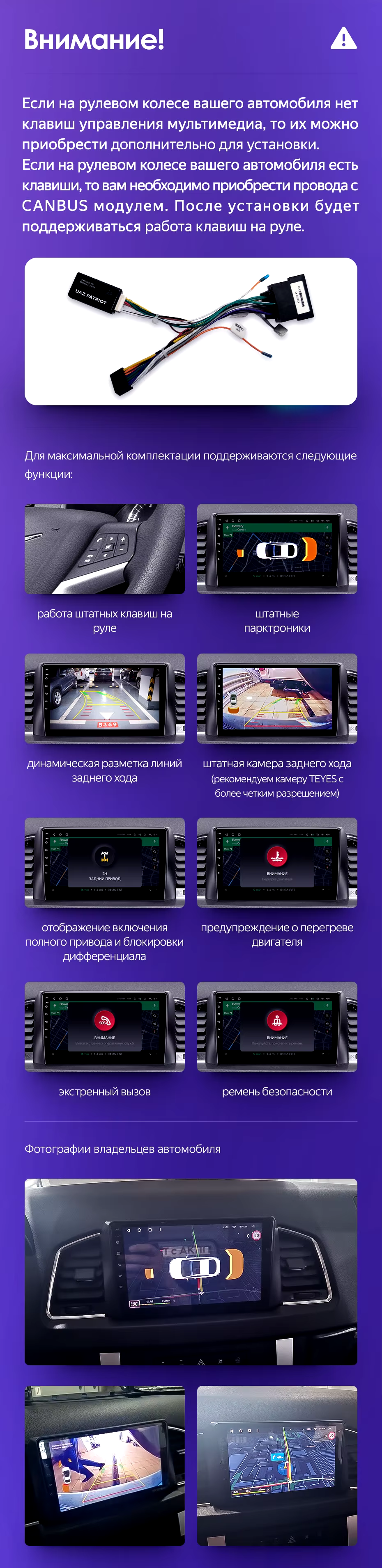 Магнитолу брал для УАЗ Патриот 2018 года. Встала хорошо. Подключил через канбас. Мультируль работает. Звук отличный, даже на штатных заводских динамиках. Поставил все пятерки.Есть не большое замечание к производителям переходных рамок на Патриот. На рамке надо поменять угол наклона. Сделать немного вертикальнее. (солнце бликует в глаза). В остальном все отлично.