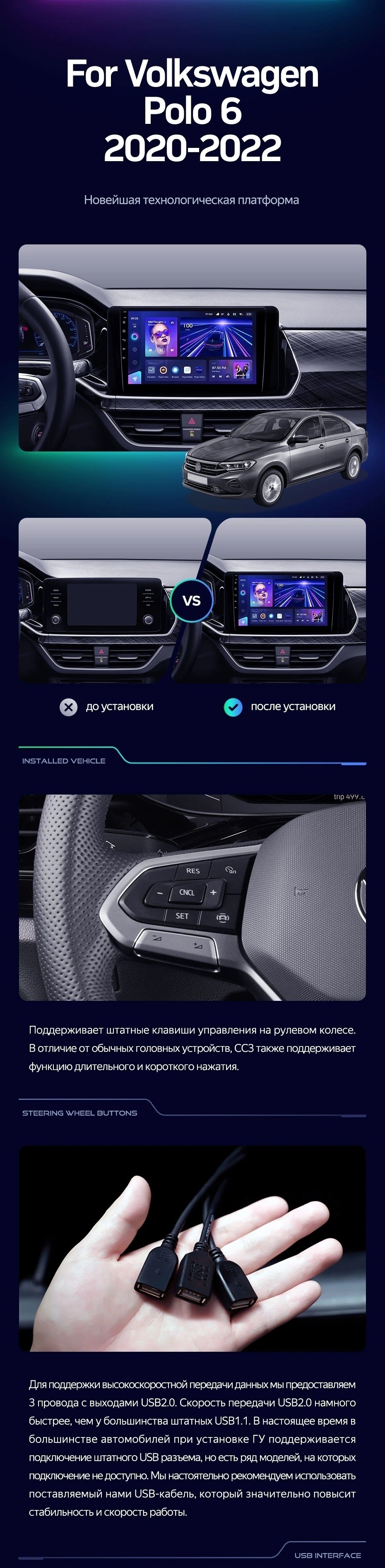 Штатная магнитола Teyes CC3 2K 6/128 Volkswagen Polo Mk6 (2020-2022) F3 - купить всего за 53 900 руб. в интернет-магазине в Тамбове Teyes.com.ru. ✓ Самый лучший выбор мультимедиа ✓ Лучшая замена штатному ГУ ✓ Тел. +7 (800) 775-31-74