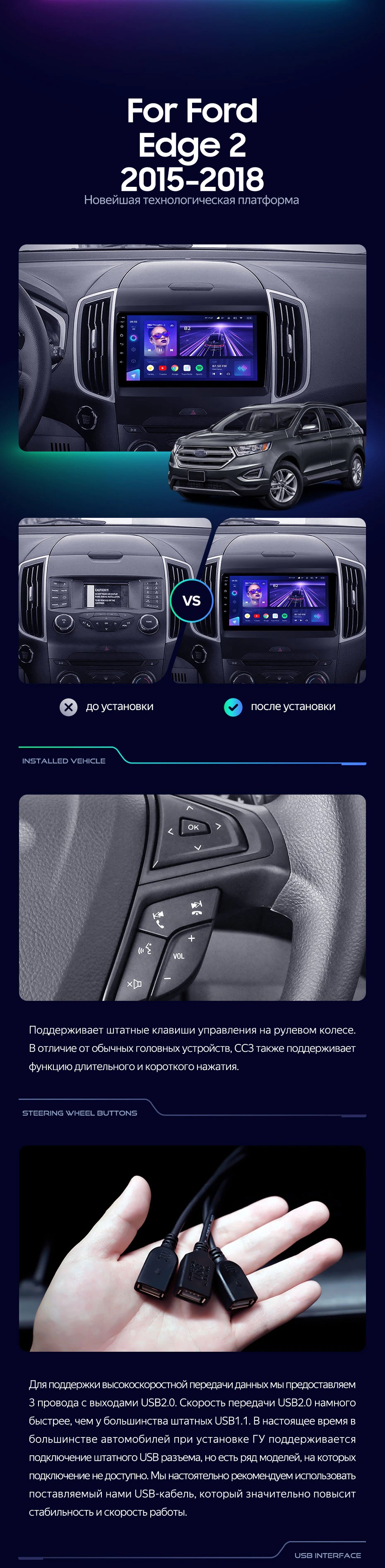 Штатная магнитола Teyes CC3 4/32 Ford Edge 2 (2015-2018) F1 - купить всего за 32 830 руб. в интернет-магазине в Тамбове Teyes.com.ru. ✓ Самый лучший выбор мультимедиа ✓ Лучшая замена штатному ГУ ✓ Тел. +7 (800) 775-31-74
