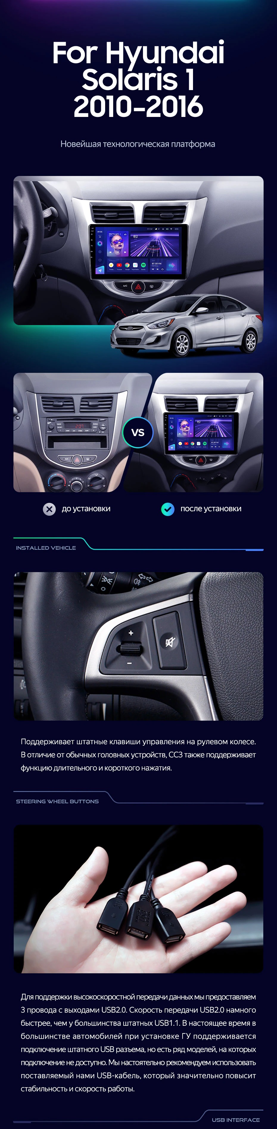 Штатная магнитола Teyes CC3 4/32 Hyundai Solaris 1 (2010-2016) F1 - купить всего за 32 230 руб. в интернет-магазине в Тамбове Teyes.com.ru. ✓ Самый лучший выбор мультимедиа ✓ Лучшая замена штатному ГУ ✓ Тел. +7 (800) 775-31-74