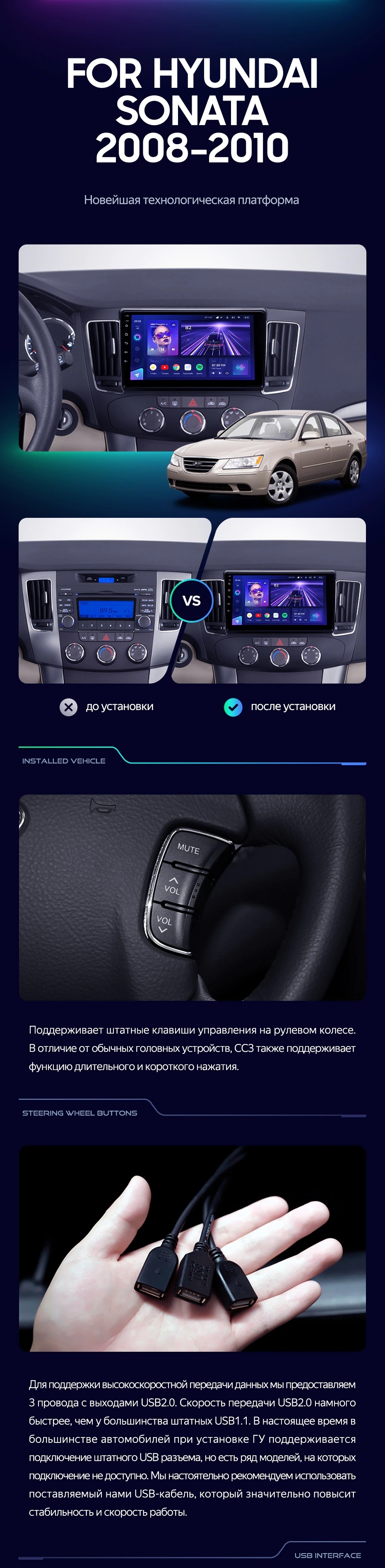 Штатная магнитола Teyes CC3 4/32 Hyundai Sonata NF (2008-2010) F2 - купить всего за 32 150 руб. в интернет-магазине в Тамбове Teyes.com.ru. ✓ Самый лучший выбор мультимедиа ✓ Лучшая замена штатному ГУ ✓ Тел. +7 (800) 775-31-74
