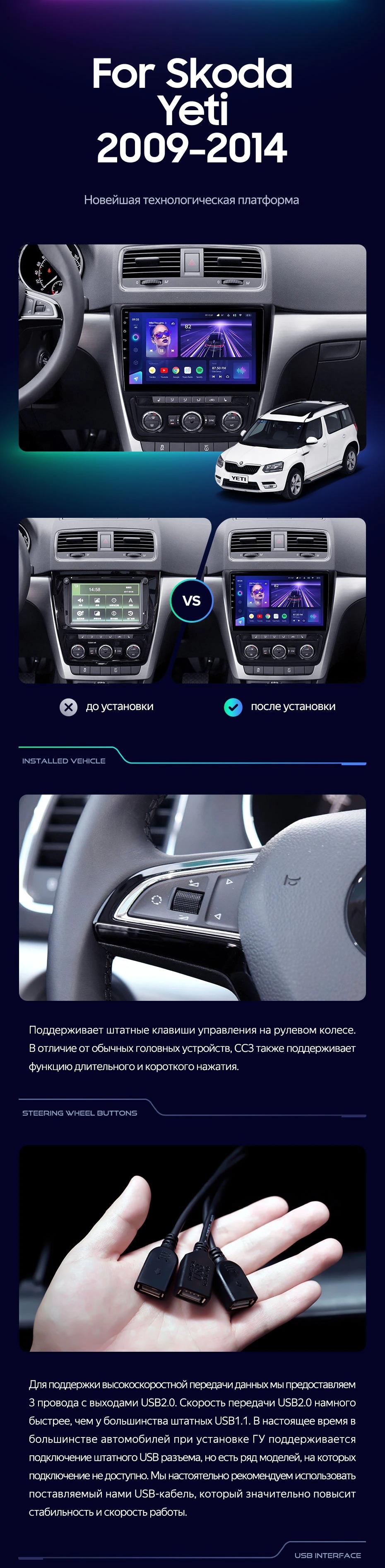 Штатная магнитола Teyes CC3 4/32 Skoda Yeti 5L (2009-2014) - купить всего за 33 300 руб. в интернет-магазине в Тамбове Teyes.com.ru. ✓ Самый лучший выбор мультимедиа ✓ Лучшая замена штатному ГУ ✓ Тел. +7 (800) 775-31-74