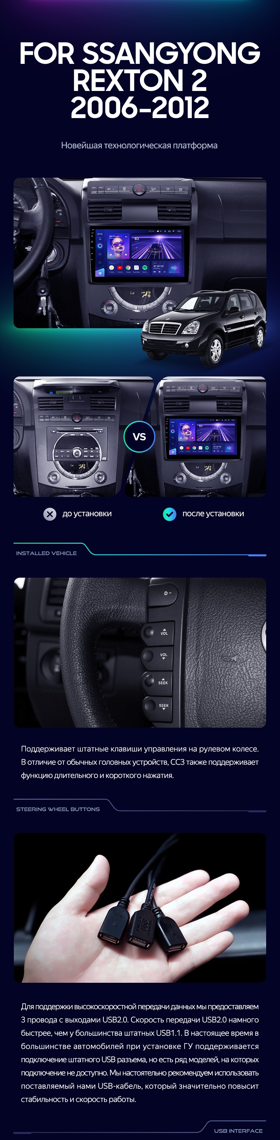 Штатная магнитола Teyes CC3 4/32 SsangYong Rexton Y250 2 (2006-2012) - купить всего за 34 400 руб. в интернет-магазине в Тамбове Teyes.com.ru. ✓ Самый лучший выбор мультимедиа ✓ Лучшая замена штатному ГУ ✓ Тел. +7 (800) 775-31-74