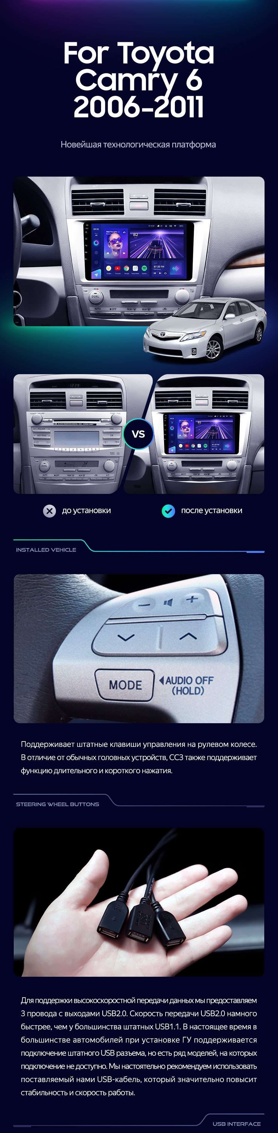 Штатная магнитола Teyes CC3 4/32 Toyota Camry 6 XV 40 (2006-2011) 10" F5 - купить всего за 32 320 руб. в интернет-магазине в Тамбове Teyes.com.ru. ✓ Самый лучший выбор мультимедиа ✓ Лучшая замена штатному ГУ ✓ Тел. +7 (800) 775-31-74