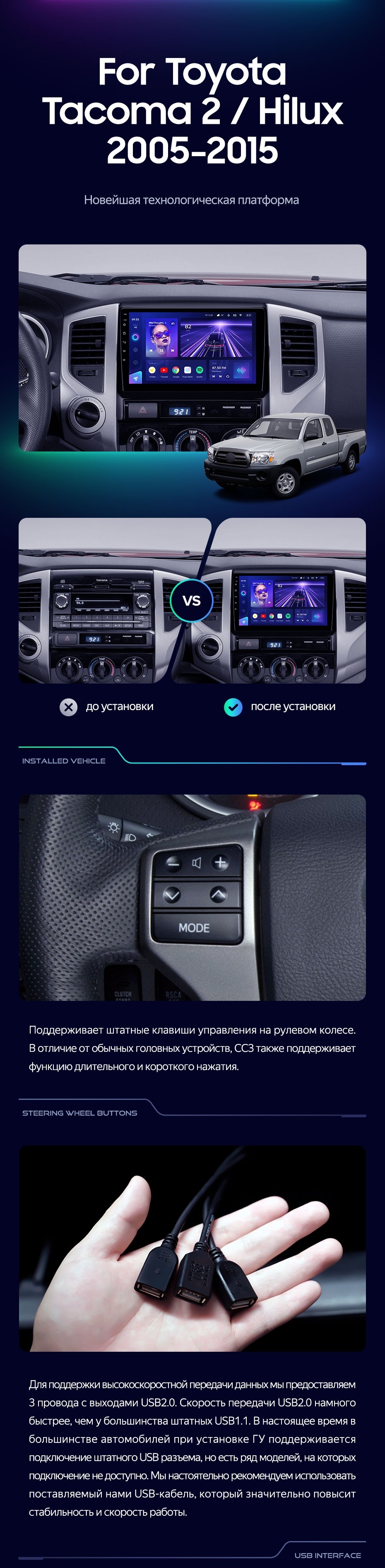 Штатная магнитола Teyes CC3 4/32 Toyota Tacoma 2 (2005-2015) - купить всего за 33 430 руб. в интернет-магазине в Тамбове Teyes.com.ru. ✓ Самый лучший выбор мультимедиа ✓ Лучшая замена штатному ГУ ✓ Тел. +7 (800) 775-31-74