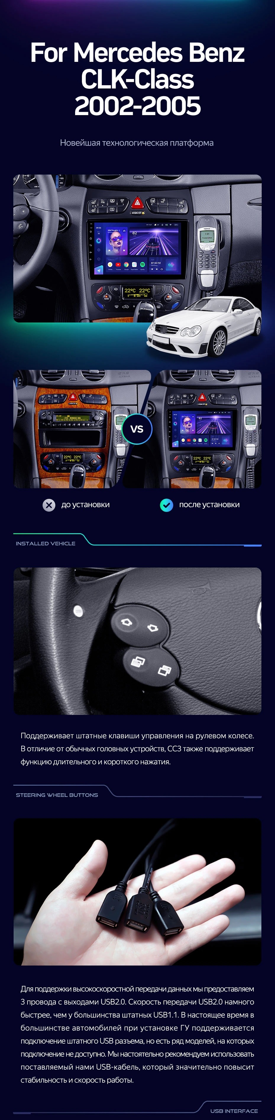 Штатная магнитола Teyes CC3 4/32 Mercedes-Benz CLK-Class C209 A209 (2002-2005) F2 - купить всего за 34 170 руб. в интернет-магазине в Тамбове Teyes.com.ru. ✓ Самый лучший выбор мультимедиа ✓ Лучшая замена штатному ГУ ✓ Тел. +7 (800) 775-31-74