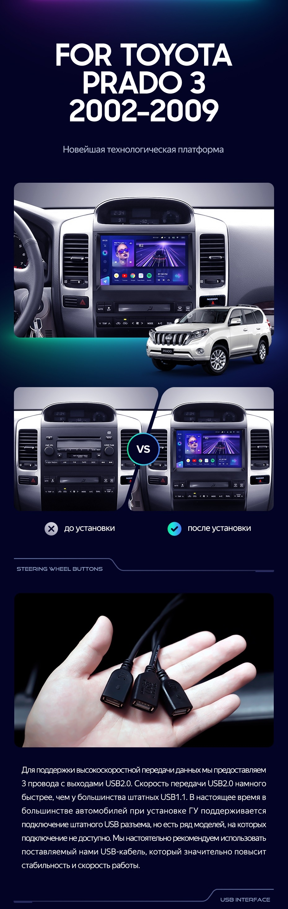 Штатная магнитола Teyes CC3 4/32 Toyota Land Cruiser Prado 120 (2002-2009) F3 - купить всего за 33 630 руб. в интернет-магазине в Тамбове Teyes.com.ru. ✓ Самый лучший выбор мультимедиа ✓ Лучшая замена штатному ГУ ✓ Тел. +7 (800) 775-31-74