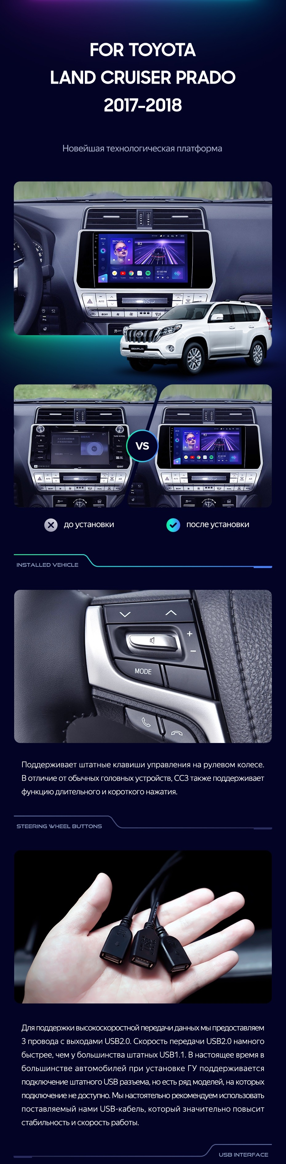 Штатная магнитола Teyes CC3 4/64 Toyota Land Cruiser Prado 150 (2017-2021) - купить всего за 44 700 руб. в интернет-магазине в Тамбове Teyes.com.ru. ✓ Самый лучший выбор мультимедиа ✓ Лучшая замена штатному ГУ ✓ Тел. +7 (800) 775-31-74