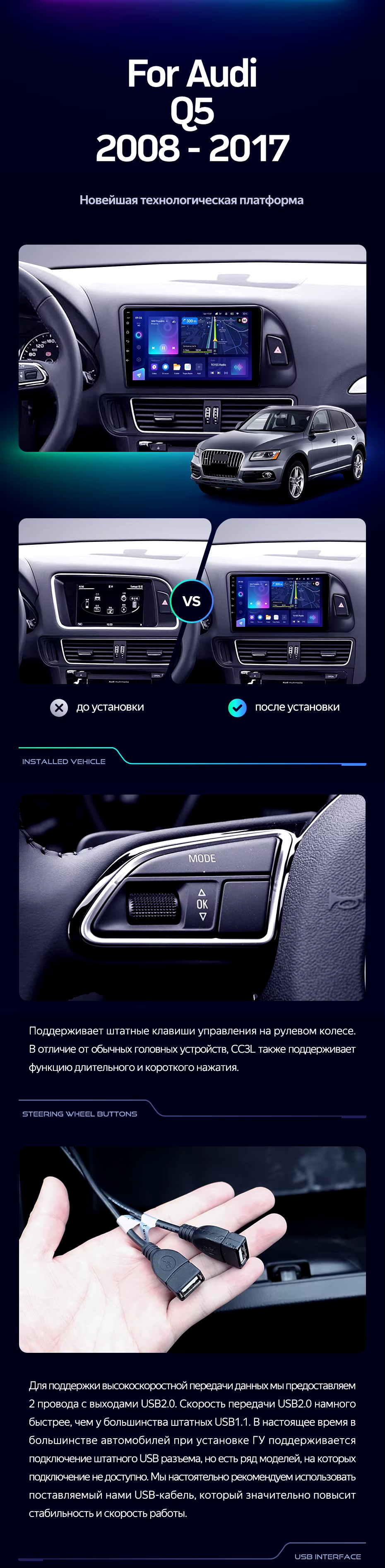 Штатная магнитола Teyes CC3L 4/32 Audi Q5 8R (2008-2017) Тип-B - купить всего за 33 270 руб. в интернет-магазине в Тамбове Teyes.com.ru. ✓ Самый лучший выбор мультимедиа ✓ Лучшая замена штатному ГУ ✓ Тел. +7 (800) 775-31-74