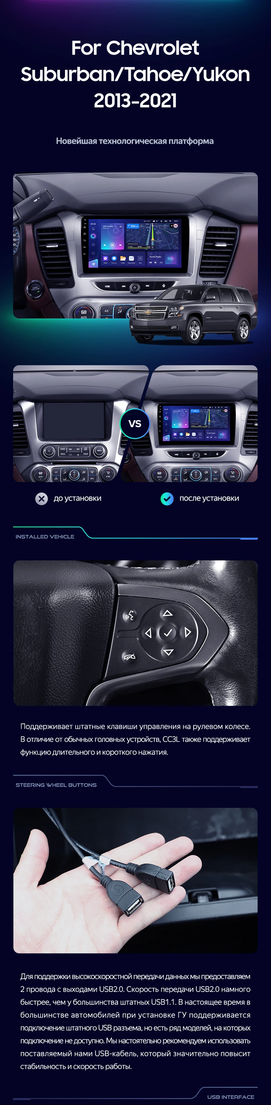 Штатная магнитола Teyes CC3L 4/32 Chevrolet Suburban GMT K2YC (2014-2020) - купить всего за 36 600 руб. в интернет-магазине в Тамбове Teyes.com.ru. ✓ Самый лучший выбор мультимедиа ✓ Лучшая замена штатному ГУ ✓ Тел. +7 (800) 775-31-74