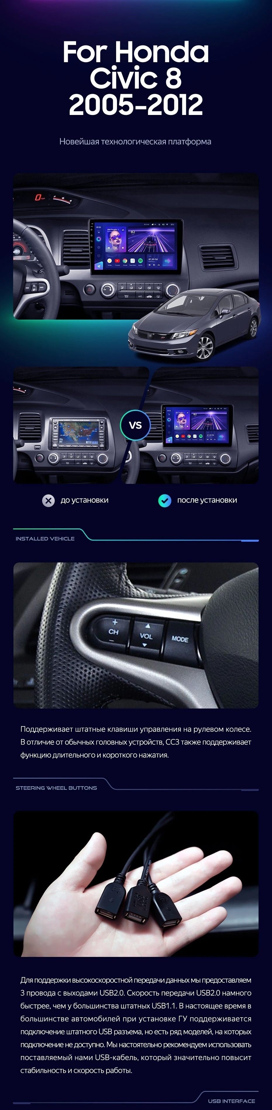 Штатная магнитола Teyes CC3L 4/32 Honda Civic 8 FK FN FD (2005-2012) - купить всего за 28 200 руб. в интернет-магазине в Тамбове Teyes.com.ru. ✓ Самый лучший выбор мультимедиа ✓ Лучшая замена штатному ГУ ✓ Тел. +7 (800) 775-31-74