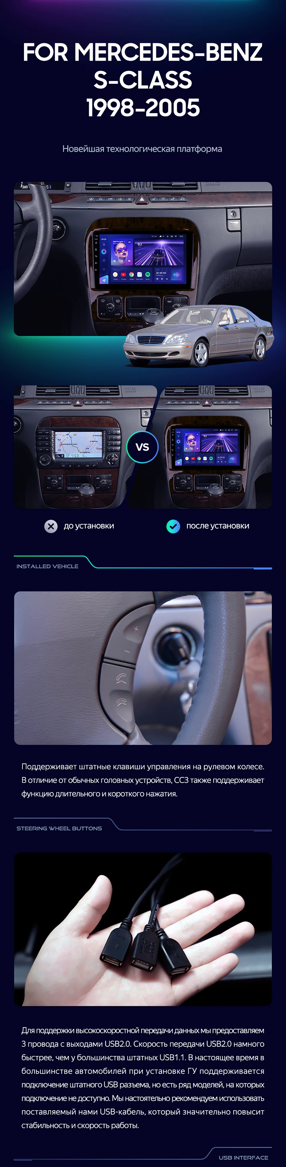 Штатная магнитола Teyes CC3L 4/32 Mercedes-Benz S-Class W220 VV220 (1998-2005) - купить всего за 32 300 руб. в интернет-магазине в Тамбове Teyes.com.ru. ✓ Самый лучший выбор мультимедиа ✓ Лучшая замена штатному ГУ ✓ Тел. +7 (800) 775-31-74