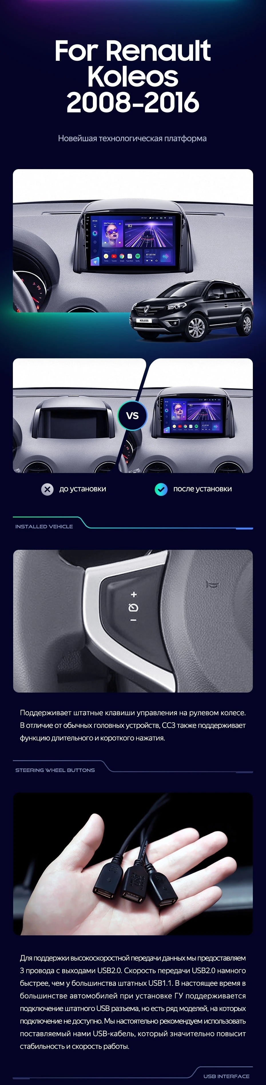 Штатная магнитола Teyes CC3L 4/32 Renault Koleos (2008-2016) Тип-A - купить всего за 32 000 руб. в интернет-магазине в Тамбове Teyes.com.ru. ✓ Самый лучший выбор мультимедиа ✓ Лучшая замена штатному ГУ ✓ Тел. +7 (800) 775-31-74
