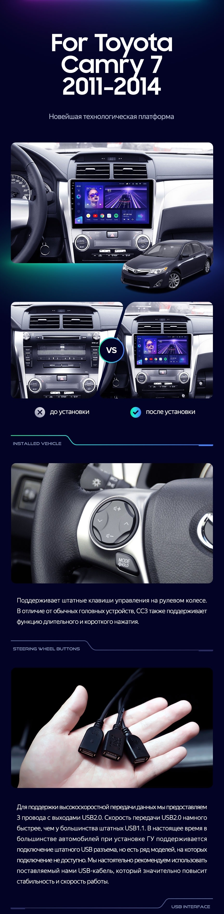 Штатная магнитола Teyes CC3L 4/32 Toyota Camry 7 XV 50 55 (2011-2014) F4 - купить всего за 28 700 руб. в интернет-магазине в Тамбове Teyes.com.ru. ✓ Самый лучший выбор мультимедиа ✓ Лучшая замена штатному ГУ ✓ Тел. +7 (800) 775-31-74