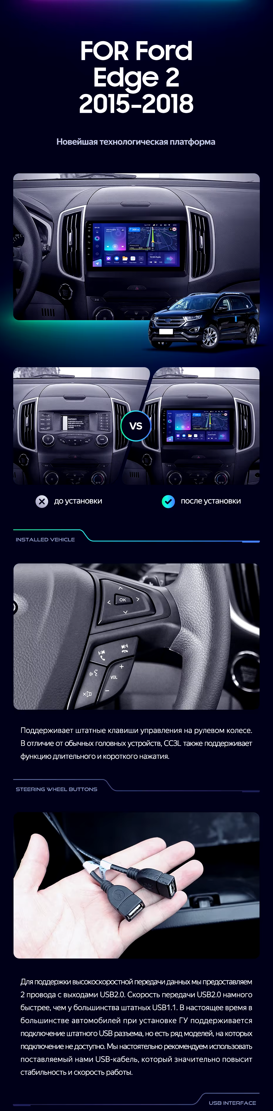 Штатная магнитола Teyes CC3L 4/64 Ford Edge 2 (2015-2018) F1 - купить всего за 31 000 руб. в интернет-магазине в Тамбове Teyes.com.ru. ✓ Самый лучший выбор мультимедиа ✓ Лучшая замена штатному ГУ ✓ Тел. +7 (800) 775-31-74