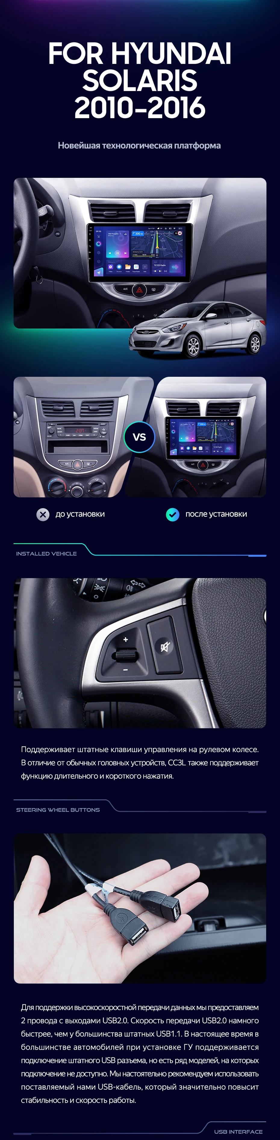 Штатная магнитола Teyes CC3L 4/64 Hyundai Solaris 1 (2010-2016) F2 (черный глянец) - купить всего за 30 010 руб. в интернет-магазине в Тамбове Teyes.com.ru. ✓ Самый лучший выбор мультимедиа ✓ Лучшая замена штатному ГУ ✓ Тел. +7 (800) 775-31-74