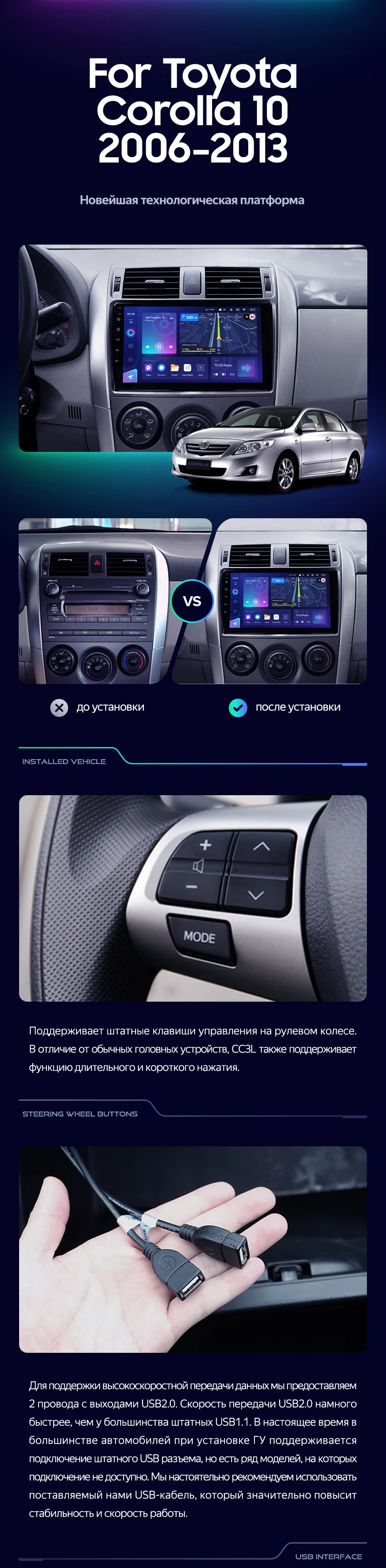 Штатная магнитола Teyes CC3L 4/64 Toyota Corolla 10 E140 E150 (2006-2013) Тип-B - купить всего за 30 020 руб. в интернет-магазине в Тамбове Teyes.com.ru. ✓ Самый лучший выбор мультимедиа ✓ Лучшая замена штатному ГУ ✓ Тел. +7 (800) 775-31-74