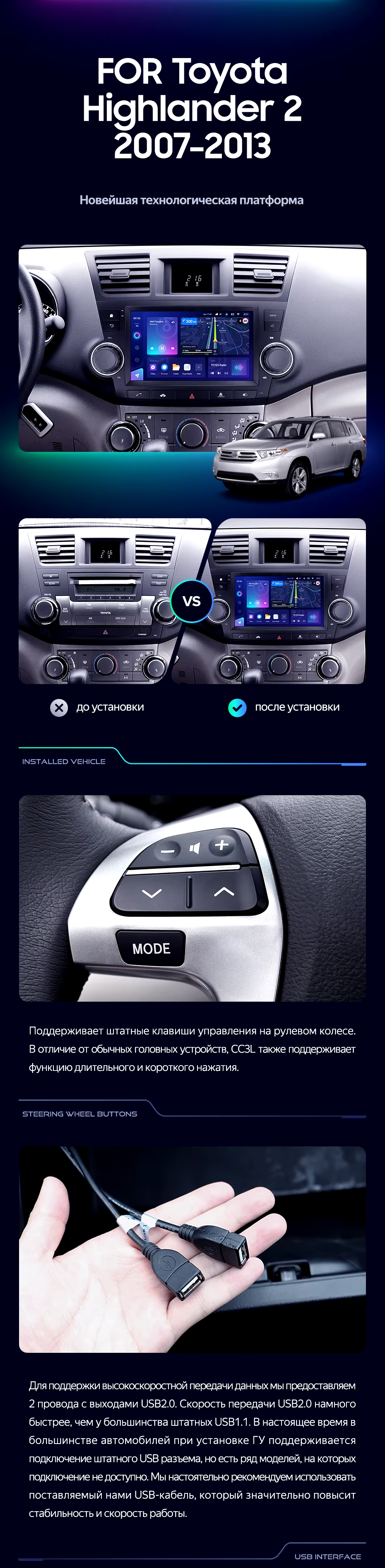 Штатная магнитола Teyes CC3L 4/64 Toyota Highlander 2 XU40 (2007-2013) F3 9" - купить всего за 33 100 руб. в интернет-магазине в Тамбове Teyes.com.ru. ✓ Самый лучший выбор мультимедиа ✓ Лучшая замена штатному ГУ ✓ Тел. +7 (800) 775-31-74