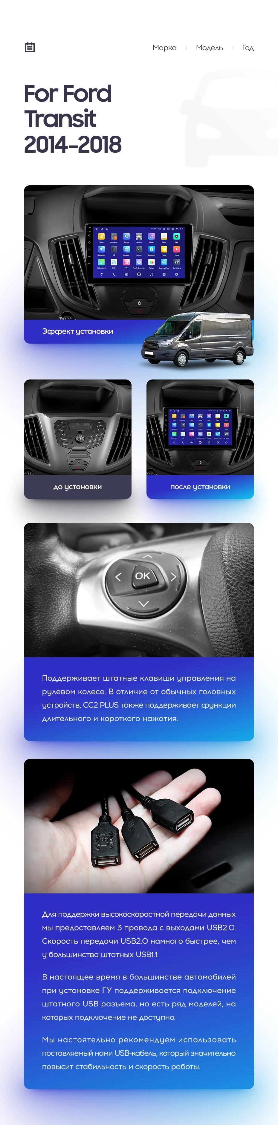 Штатная магнитола Teyes CC3L WiFi 2/32 Ford Transit Van L3H2 (2014-2018) - купить всего за 17 000 руб. в интернет-магазине в Тамбове Teyes.com.ru. ✓ Самый лучший выбор мультимедиа ✓ Лучшая замена штатному ГУ ✓ Тел. +7 (800) 775-31-74