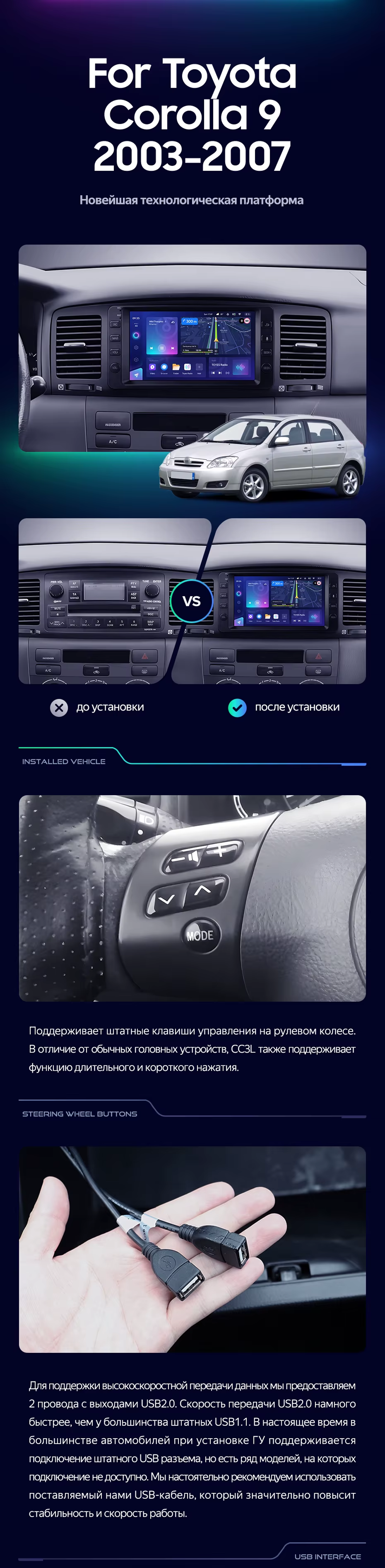 Штатная магнитола Teyes CC3L WiFi 2/32 Toyota Corolla 9 E120 E130 (2003-2007) 7" - купить всего за 22 500 руб. в интернет-магазине в Тамбове Teyes.com.ru. ✓ Самый лучший выбор мультимедиа ✓ Лучшая замена штатному ГУ ✓ Тел. +7 (800) 775-31-74