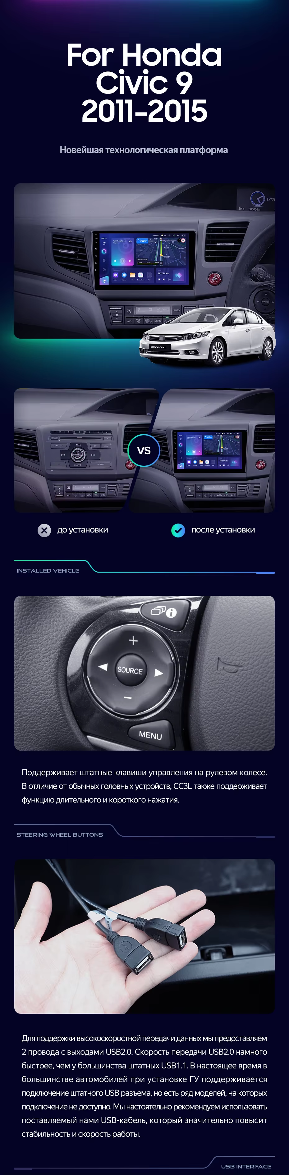 Штатная магнитола Teyes CC4 6/64 Civic 9 FB FK FD (2011-2015) Правый руль - купить всего за 49 400 руб. в интернет-магазине в Тамбове Teyes.com.ru. ✓ Самый лучший выбор мультимедиа ✓ Лучшая замена штатному ГУ ✓ Тел. +7 (800) 775-31-74
