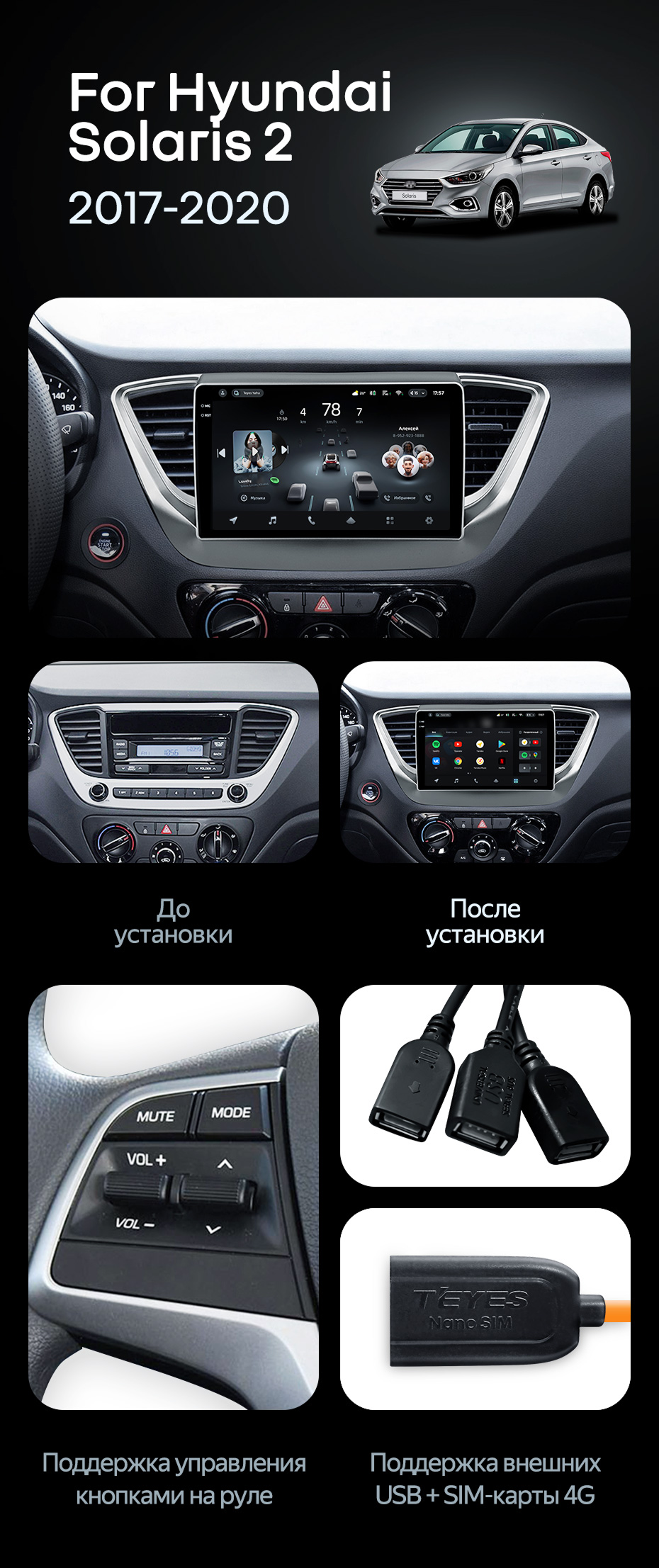 Штатная магнитола Teyes CC4 8/128 Hyundai Solaris 2 (2017-2020) F1 Тип-B - купить всего за 53 800 руб. в интернет-магазине в Тамбове Teyes.com.ru. ✓ Самый лучший выбор мультимедиа ✓ Лучшая замена штатному ГУ ✓ Тел. +7 (800) 775-31-74