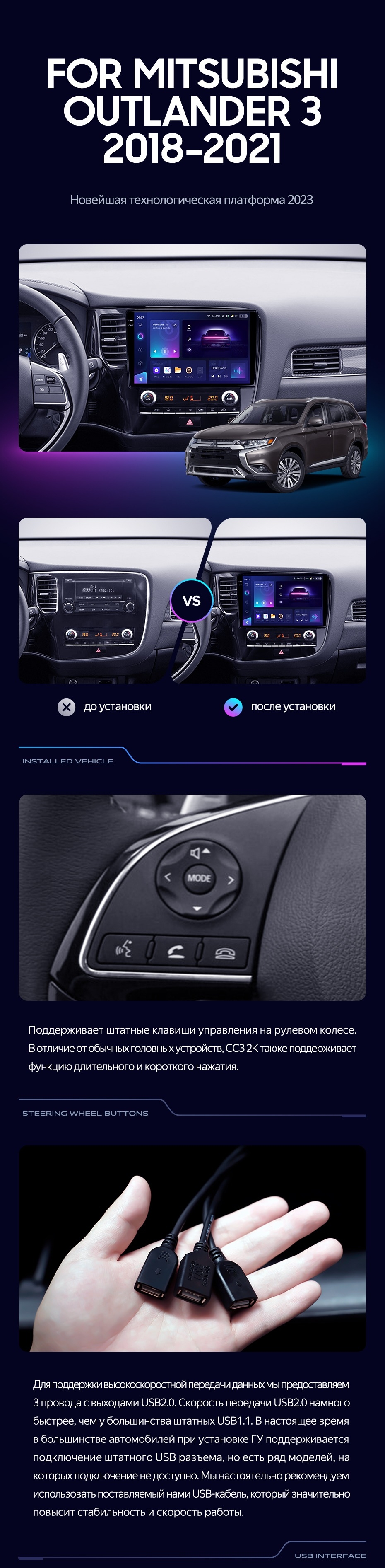 Штатная магнитола Teyes CC4 8/128 Mitsubishi Outlander 3 (2018-2021) - купить всего за 54 080 руб. в интернет-магазине в Тамбове Teyes.com.ru. ✓ Самый лучший выбор мультимедиа ✓ Лучшая замена штатному ГУ ✓ Тел. +7 (800) 775-31-74