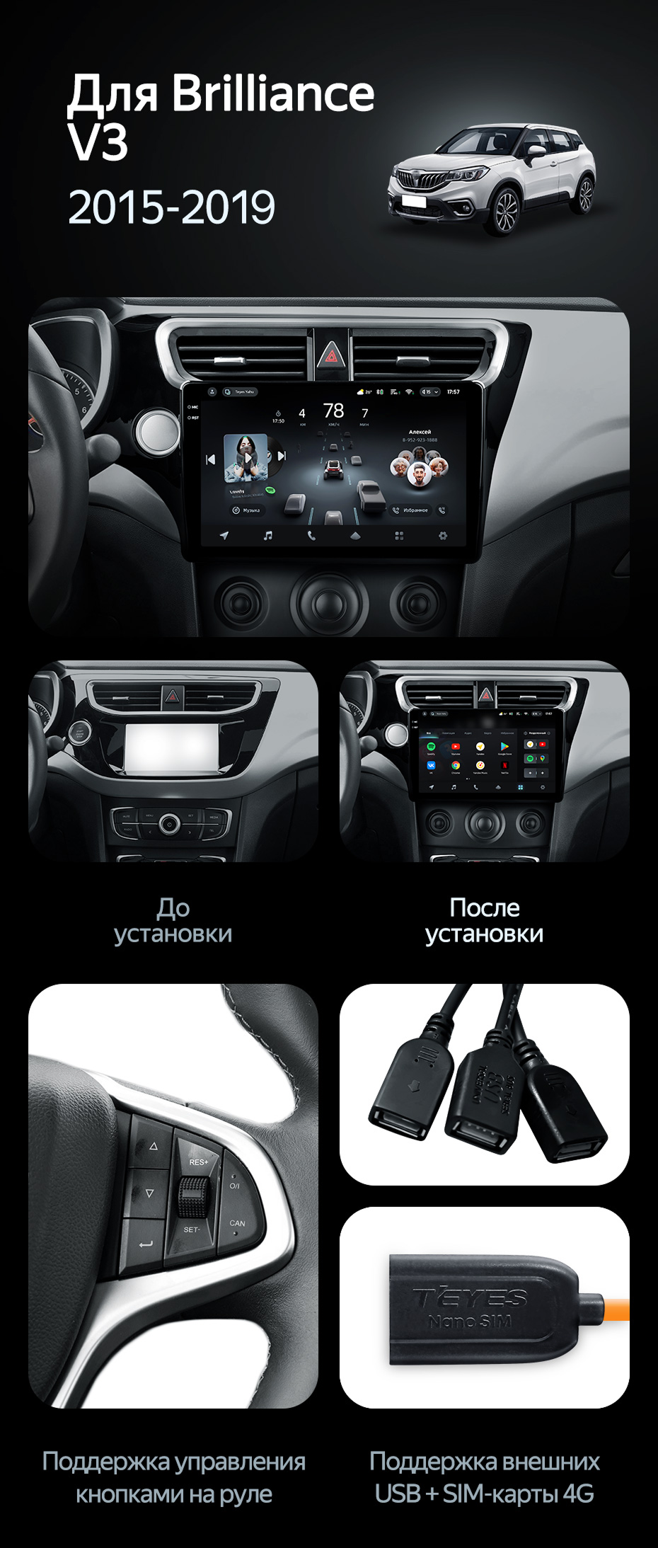 Штатная магнитола Teyes CC4 Pro 12/256 Brilliance V3 (2015-2019) - купить всего за 65 950 руб. в интернет-магазине в Тамбове Teyes.com.ru. ✓ Самый лучший выбор мультимедиа ✓ Лучшая замена штатному ГУ ✓ Тел. +7 (800) 775-31-74