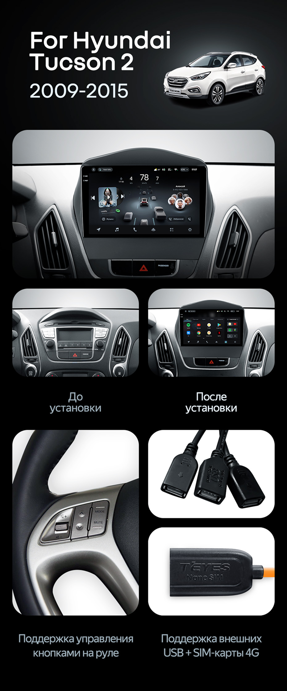 Штатная магнитола Teyes CC4 Pro 12/256 Hyundai ix35 (2009-2015) (Tucson 2) Тип-AB - купить всего за 65 830 руб. в интернет-магазине в Тамбове Teyes.com.ru. ✓ Самый лучший выбор мультимедиа ✓ Лучшая замена штатному ГУ ✓ Тел. +7 (800) 775-31-74