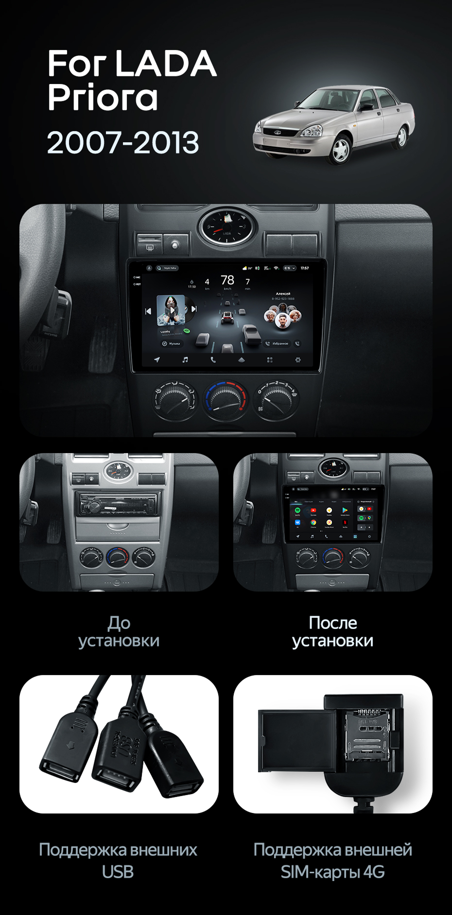 - 4 ГБ — комфортная работа с навигацией, стримингом и несколькими приложениями одновременно.